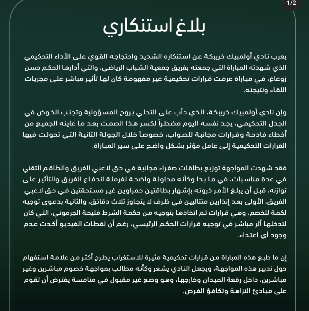 أولمبيك خريبكة يكتفي بالتعادل أمام جمعية الشباب الرياضي ويحتج على التحكيم .