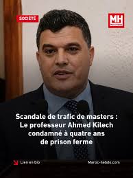 Le couperet judiciaire est tombé ce vendredi 3 avril 2026 dans une affaire qui ébranle profondément le système universitaire marocain. Au cœur de ce scandale de corruption et de trafic de diplômes de Master, le professeur Ahmed Kilech a été condamné à quatre ans de prison ferme, assortis d’une lourde amende de 237 000 dirhams. La décision a été rendue par la chambre criminelle spécialisée dans les crimes financiers près la Cour d’appel de Marrakech.